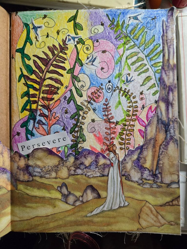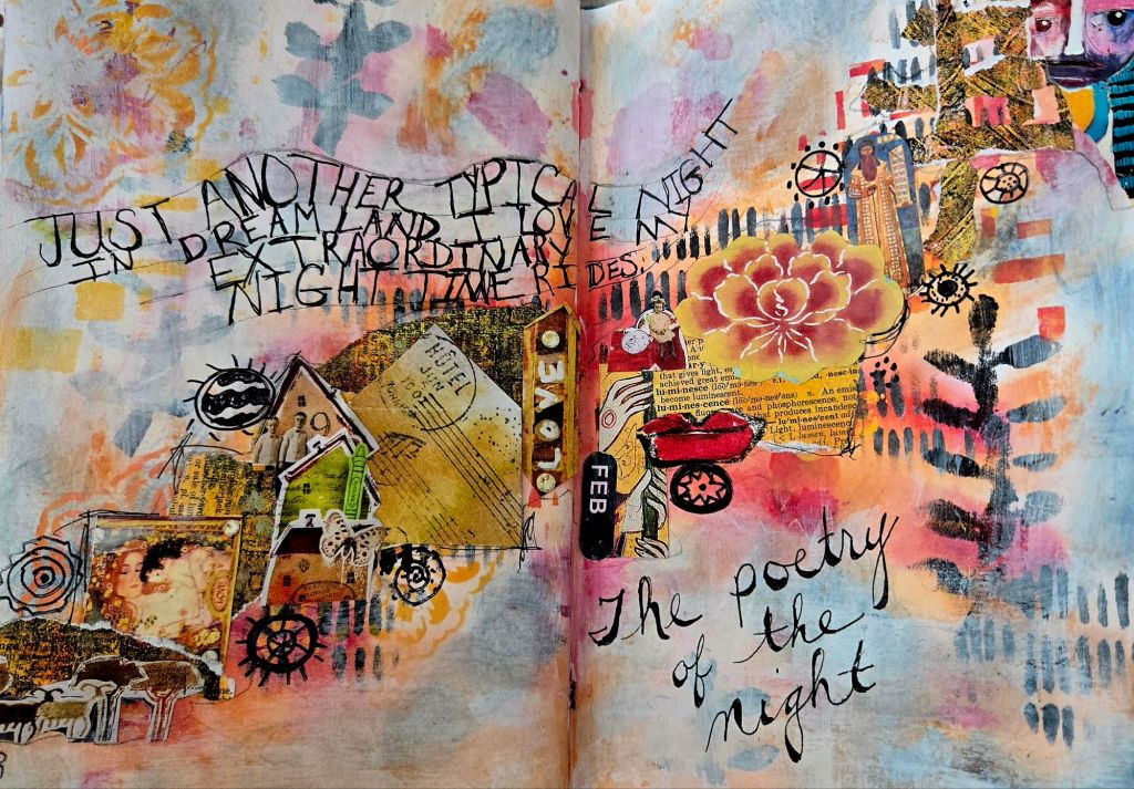 A typical approach to art journaling involves mixed media. Simply put, mixed media is the process of combining two or more art materials into one work of art.