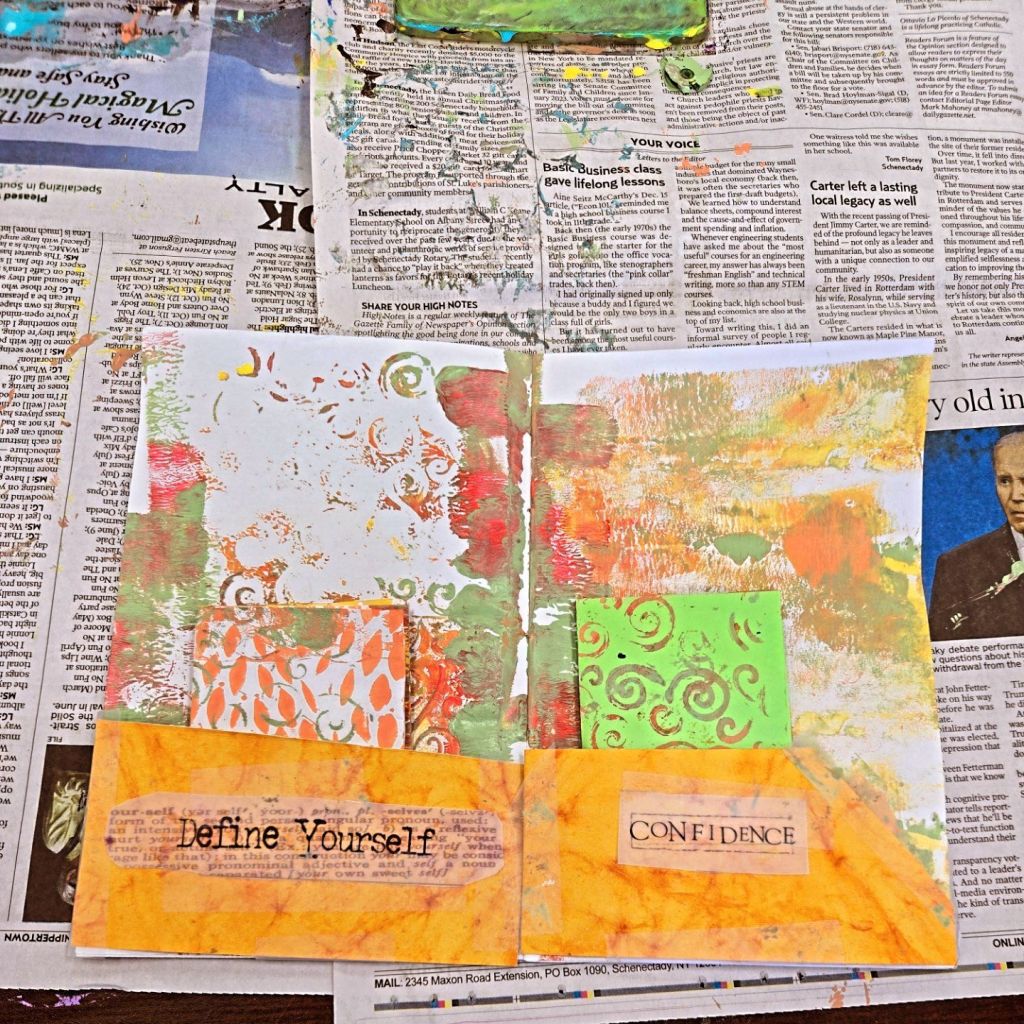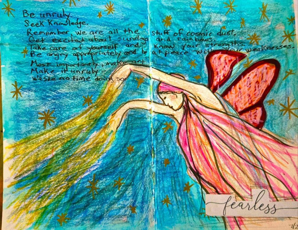 Art journaling is a creative process focusing on visual art-making as a form of self-expression. Anyone can art journal. Whether you believe you can’t draw a straight line or you are an experienced artist, art journaling is a safe place to explore your thoughts and emotions. Consider your art journaling practice a comforting gift to yourself.